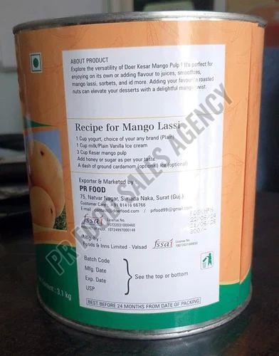 We offer premium 3.1 Kg Doer Kesar Mango Pulp sourced from India, packed in a durable tin container. Our Doer brand ensures top quality with a shelf life of 24 months. This luscious mango pulp is perfect for direct consumption, boasting the rich flavor of Kesar mangoes. Ideal for manufacturers, exporters, and suppliers looking to provide authentic Indian mango goodness to their customers.